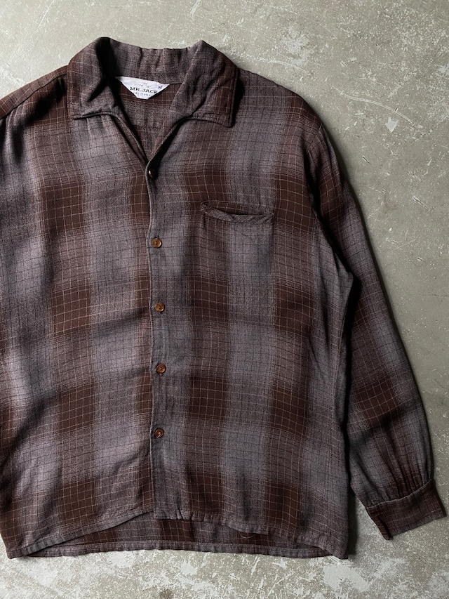 50s MR.JACK Rayon Shirt “ Shadow Plaid ” / vintage ビンテージ ヴィンテージ 古着 シャドウ ombre オンブレ check チェック pattern パターン 柄 レーヨン シャツ 長袖 50 年代