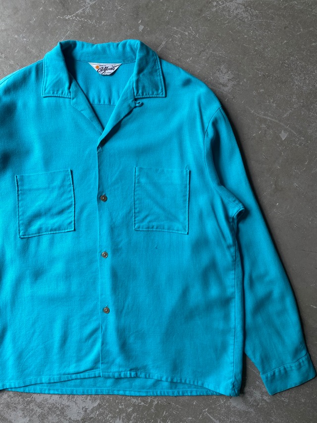 50s MADE IN California Rayon Shirt “ Turquoise Blue ” / vintage ビンテージ ヴィンテージ 古着 レーヨン シャツ ターコイズ ブルー 単色 Plain color 開襟 open collar 50 年代 カリフォルニア