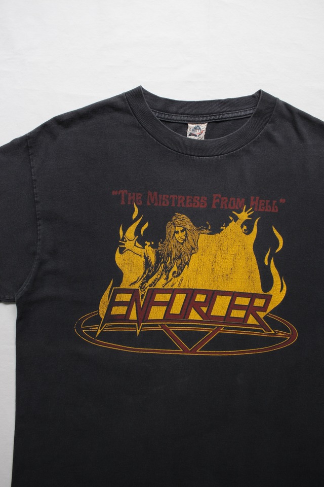 00s ENFORCER “ THE MISTRESS FROM HELL ” T-Shirt / vintage ビンテージ ヴィンテージ 古着 エンフォーサー metal heavy ヘビー ヘヴィー speed スピード band バンド バンT 炭黒 fade フェード M サイズ size
