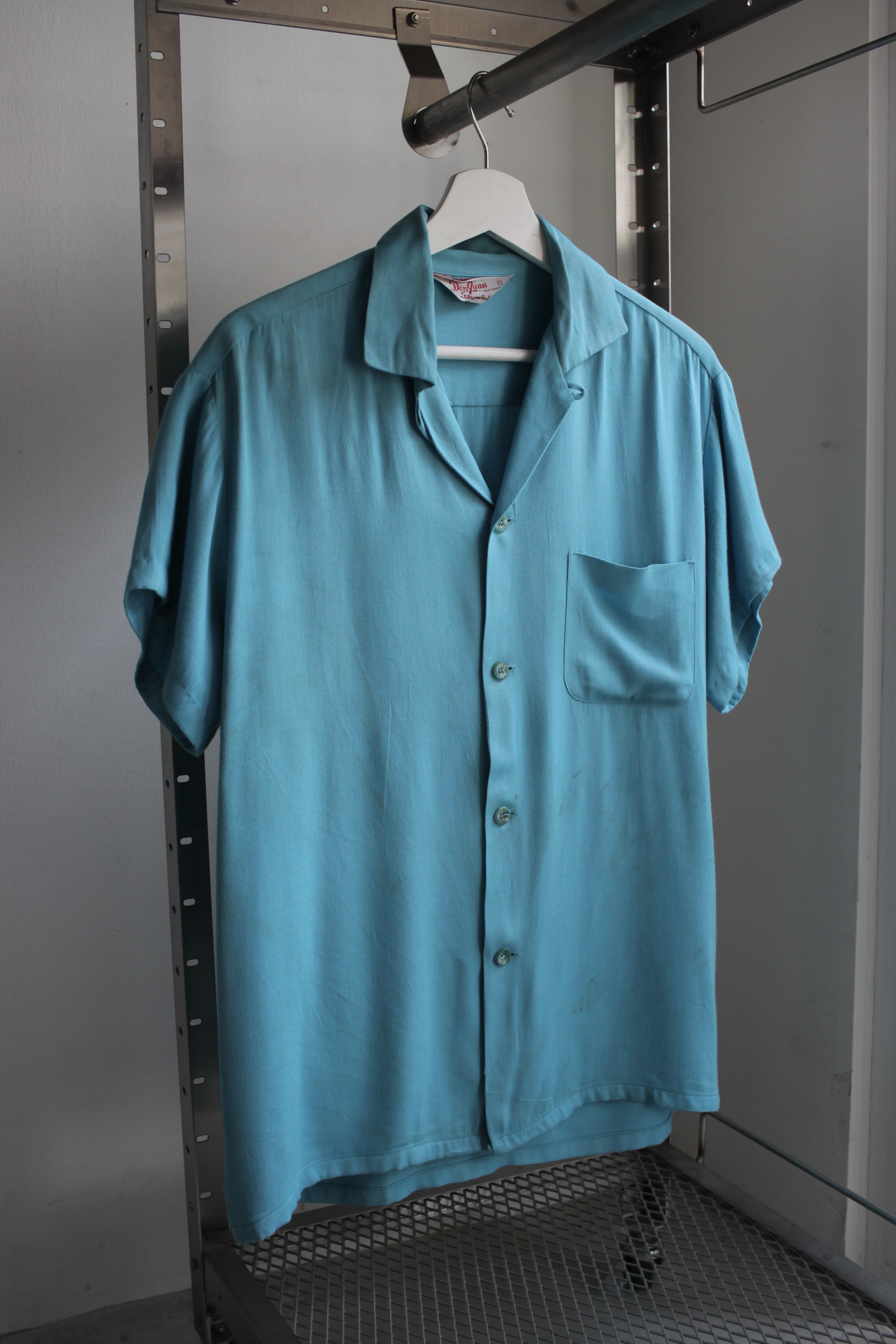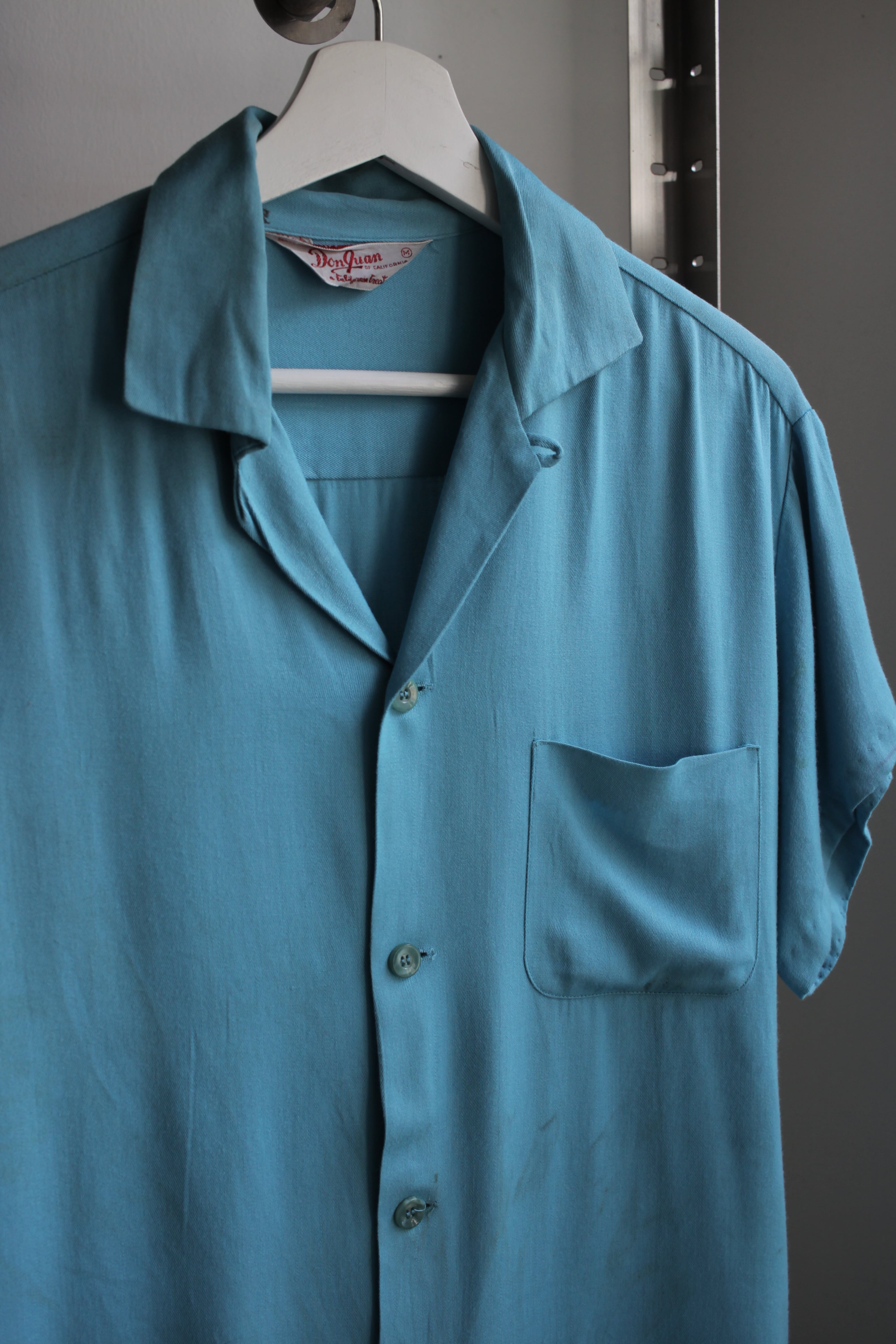 50s Don Juan S/S Rayon Shirt / vintage ヴィンテージ ビンテージ 古着 plain color 無地 単色 半袖 レーヨン シャツ 50 年代 M 水色 ターコイズ ブルー