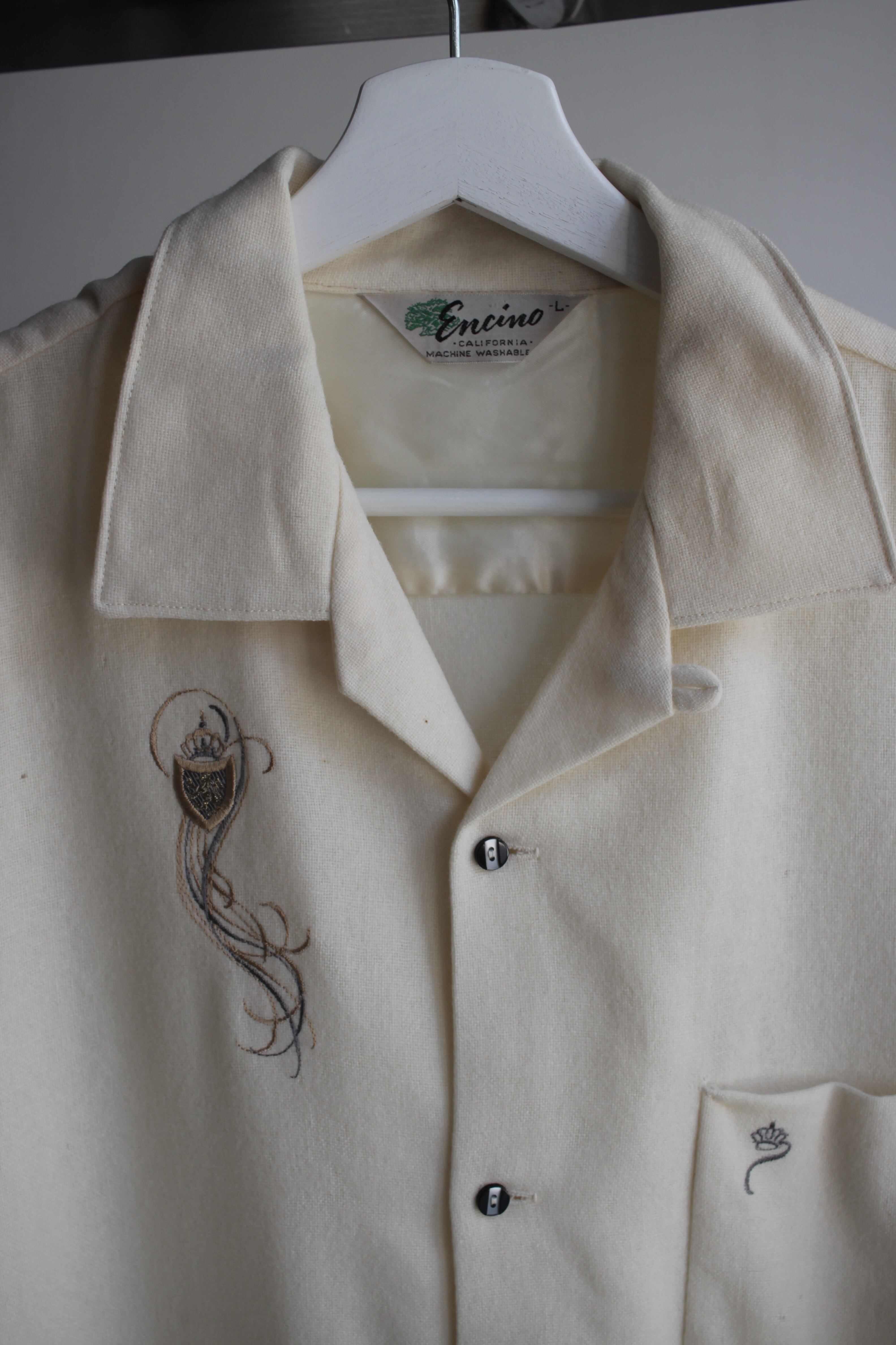 50s Encino Wool Shirt / vintage ビンテージ ヴィンテージ 古着 ウール シャツ 開襟 刺繍 単色 white 白 アイボリー L 50 年代