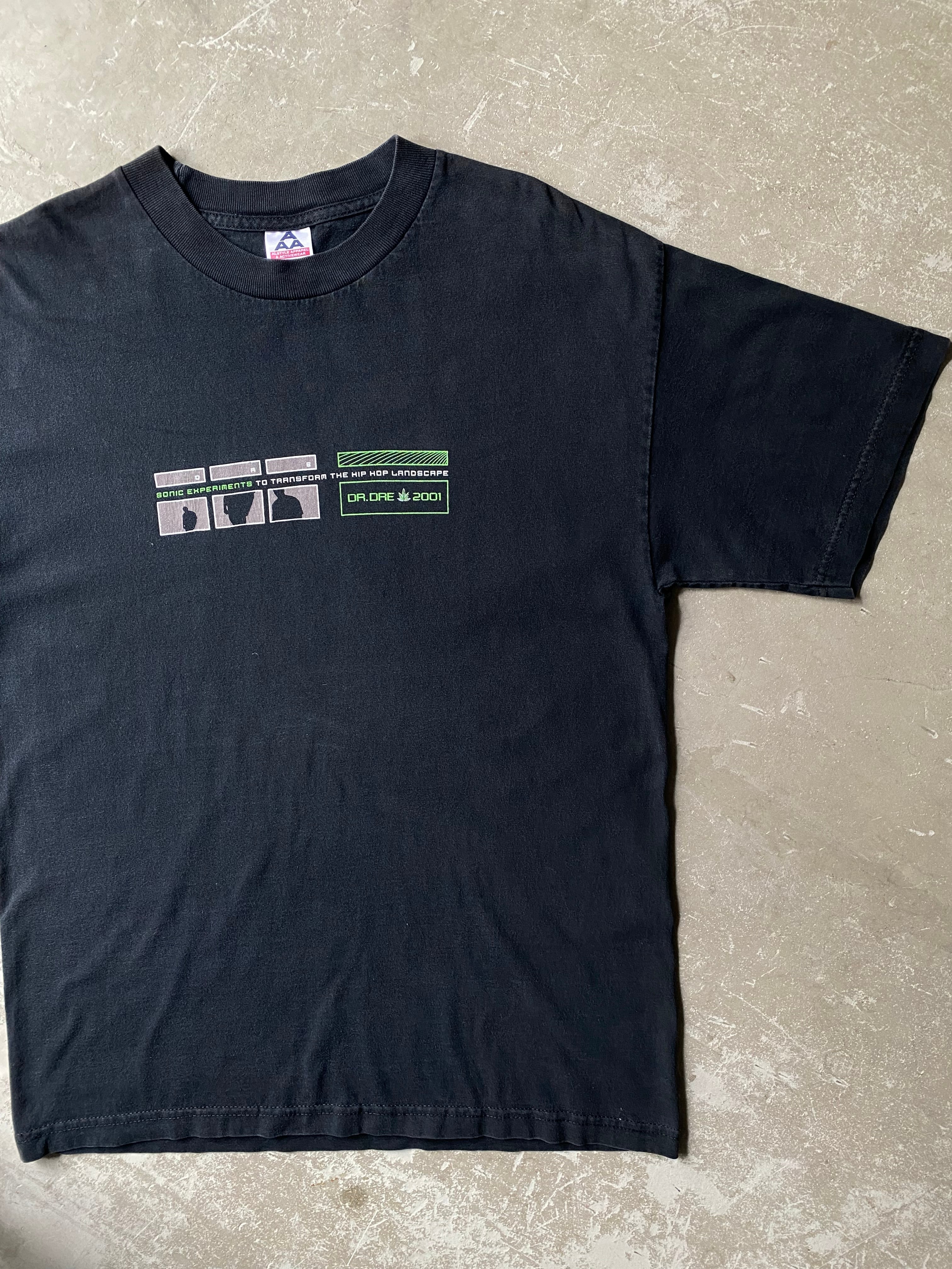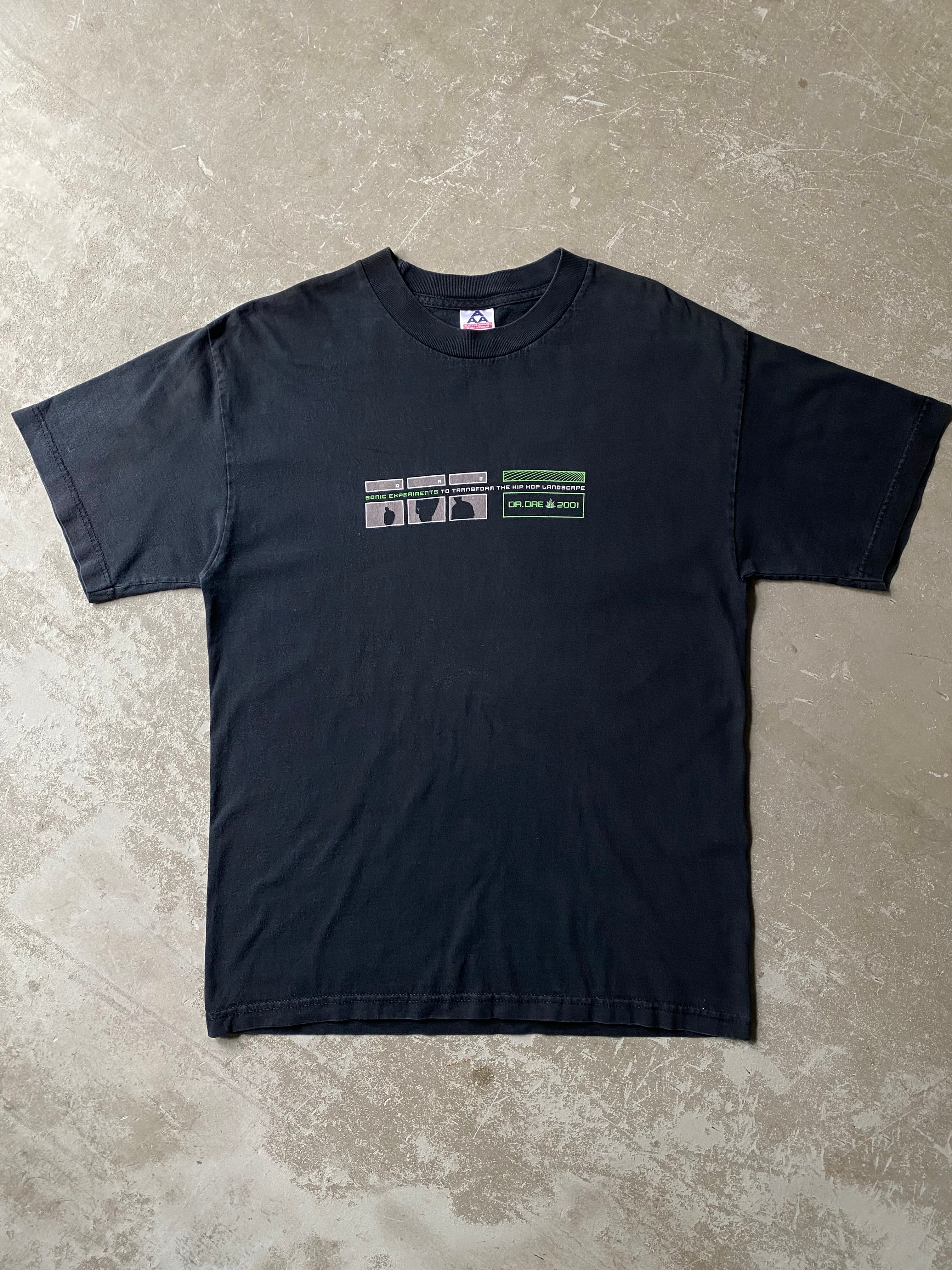 00s DR.DRE T-Shirt “ 2001 ” / vintage ビンテージ ヴィンテージ 古着 ドクター ドレ rap ラップ Tシャツ hip hop ヒップ ホップ NWA icecube Eazy E snoop dog スヌープ ドッグ 2pac tupack black 黒 fade 炭黒 Alstyle L 90 00 年代 dr dre