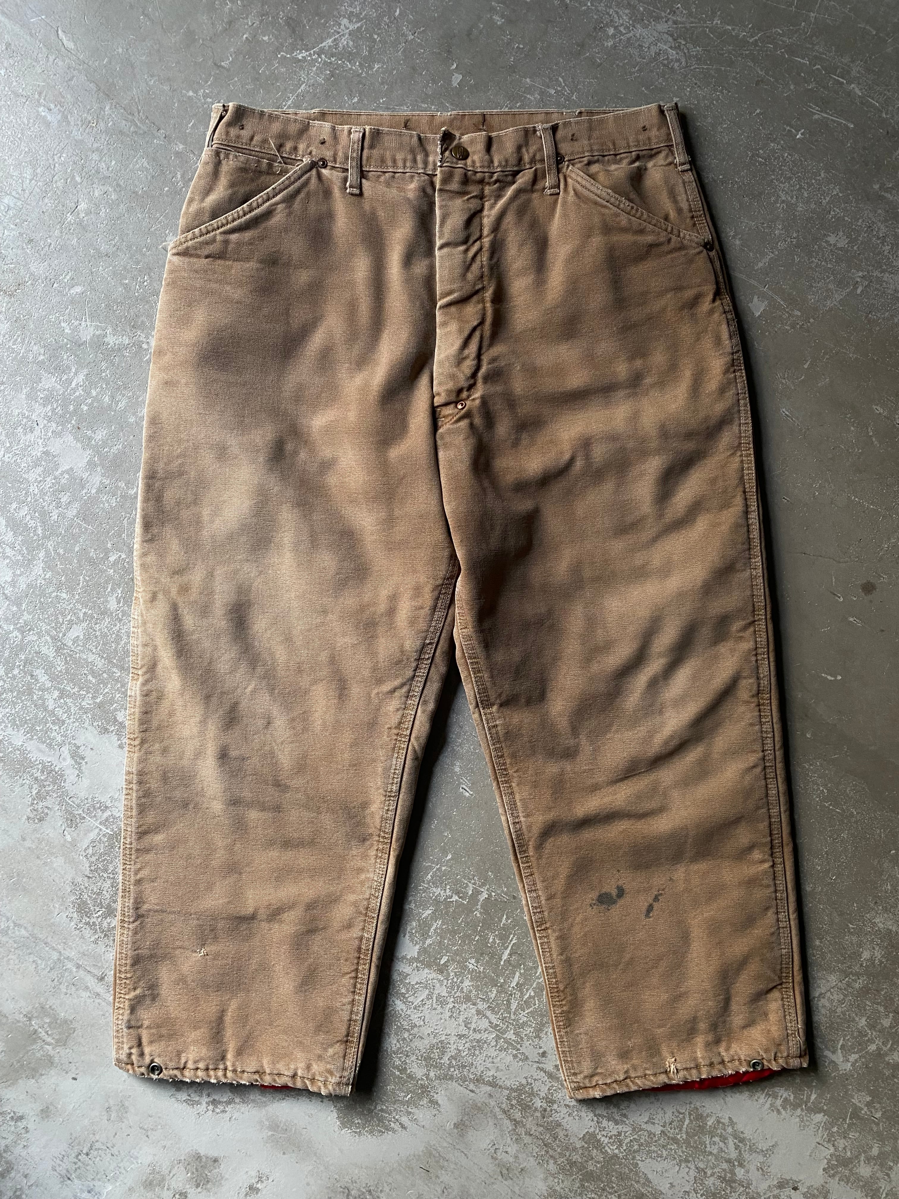 70s Carhartt Quilt Lined Duck Pants / vintage ビンテージ ヴィンテージ 古着 カーハート ダック painter ペインター quilting キルティング パンツ プリントタグ Cボタン ユニオンチケット W34 L 26